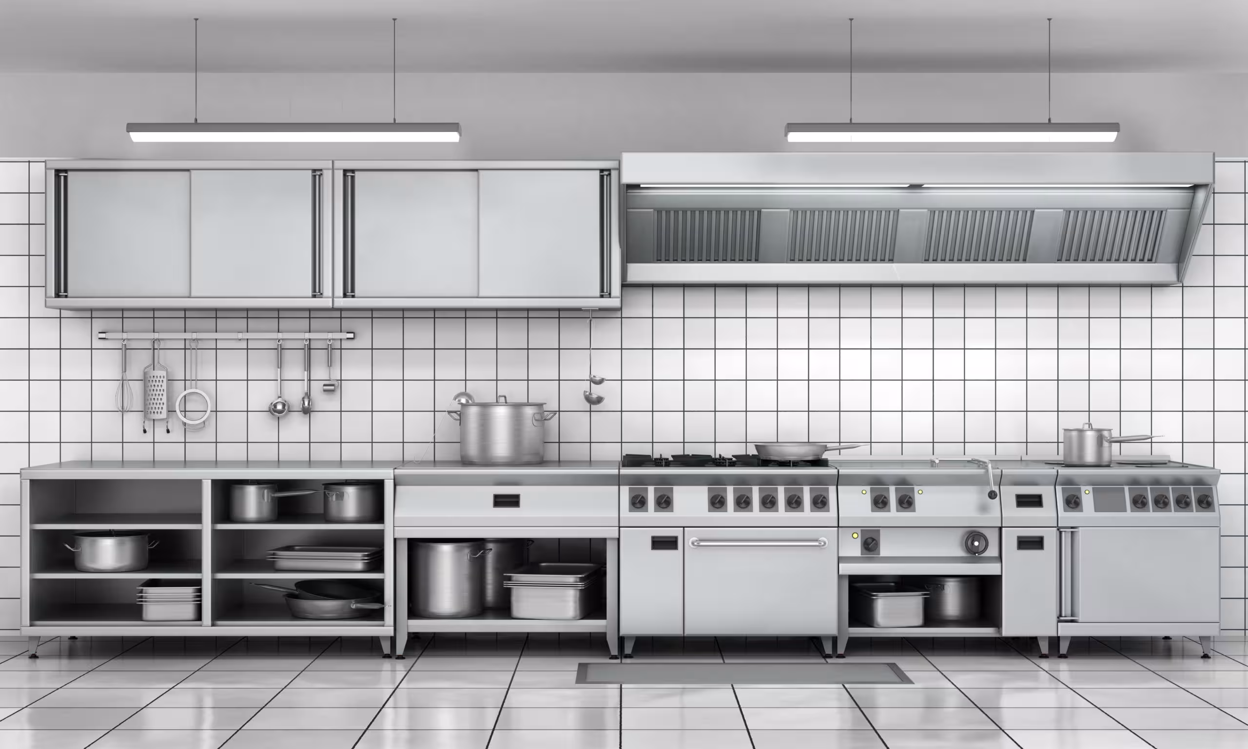 Côté sécurité, il est nécessaire que vos employés travaillent dans une cuisine sûre. Pour ceci, on évitera le carrelage classique au bénéfice d’un sol anti-dérapant. Les positions ergonomiques doivent pouvoir être respectées, en s’assurant notamment des bons réglages des tables de cuisine et du matériel de restauration (en termes de hauteur et de qualité de rangement).