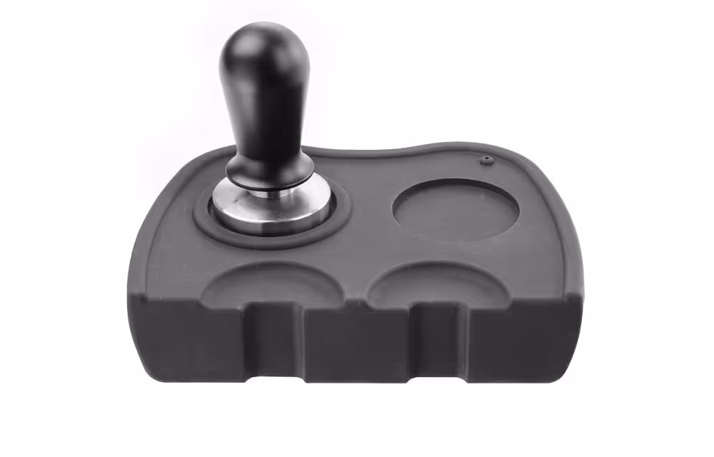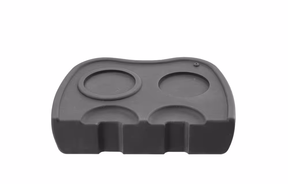 Fait en silicone, avec un renfoncement pour pouvoir placer 2 porte-filtres pendant le tassage du café.