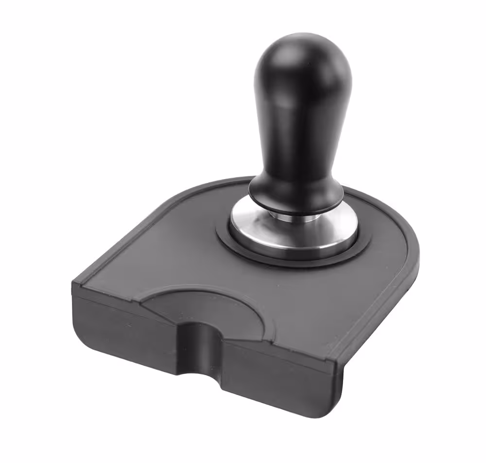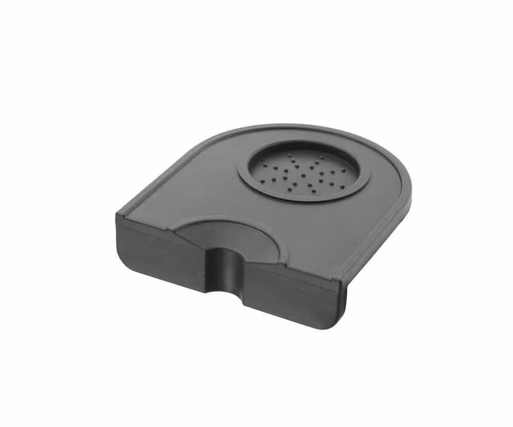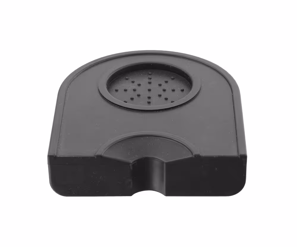 Fait en silicone, avec un renfoncement pour pouvoir placer le porte-filtre pendant le tassage du café.