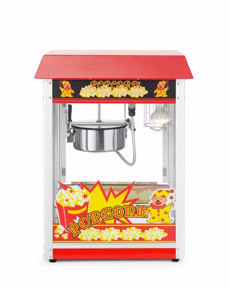 La machine à pop-corn HENDI peut produire du pop-corn à partir de 150 g de grains de maïs à la fois. Disponible en deux couleurs : rouge avec des autocollants accrocheurs et noir sobre sans autocollants.