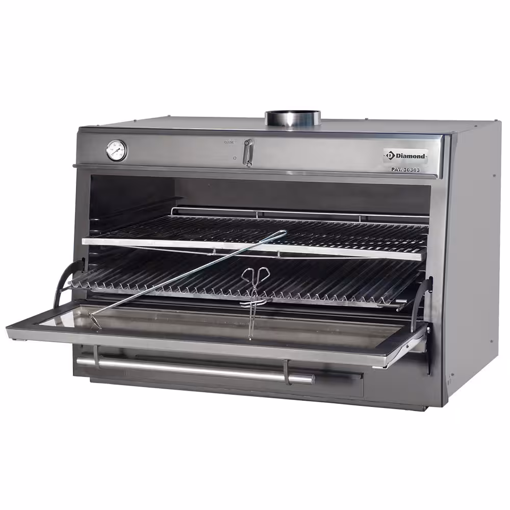 Four-BBQ à charbon, GN 2/1 + GN1/1 (150 Kg/h)/Inox