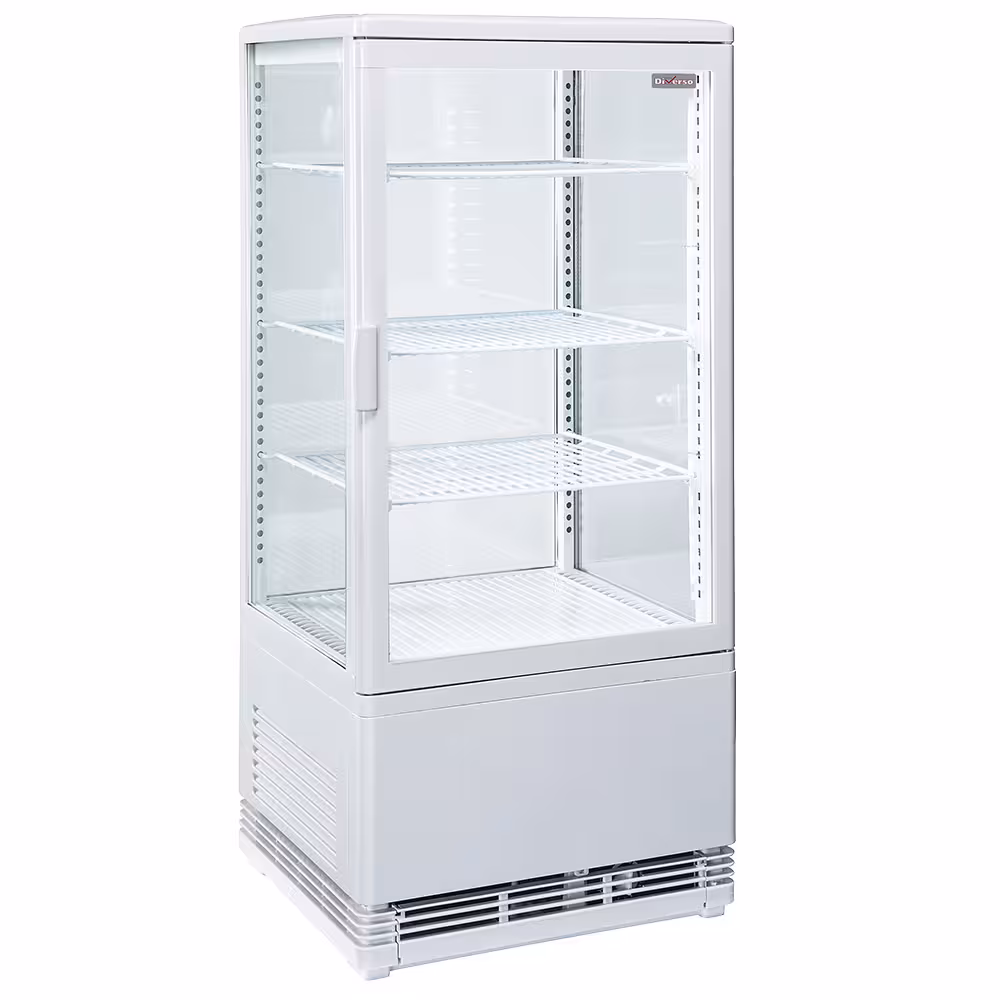 Vitrine de table ventilée 4 niveaux, 4 faces vitrées,  80 litres – BLANCHE