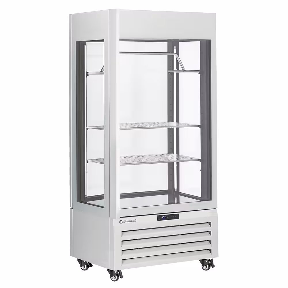 Soyez le premier à laisser votre avis sur “Vitrine « FULL vitrée » 600 Lt., 2 étagères & barre à viande, ventilée – MEAT – BLANC”