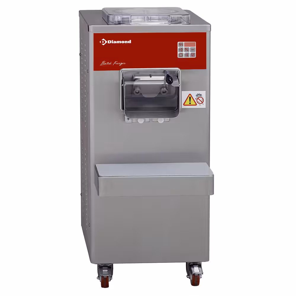 – Turbine verticale avec extraction automatique.- Capacité de mélange minimum 3 lit. et maximum 7 lit.- Niveau sonore inférieur à 70 dB.- Cylindres-évaporateurs verticaux pour une plus grande surface d’échange.- Cycle avec contrôle du temps ou avec contrôle de la température.- Dispositif de distribution exclusif. – Auto diagnostic système.- Durée du cycle: 8/12 min.- Production horaire: 50 litres.NB: essentiellement pour le travail à froid.