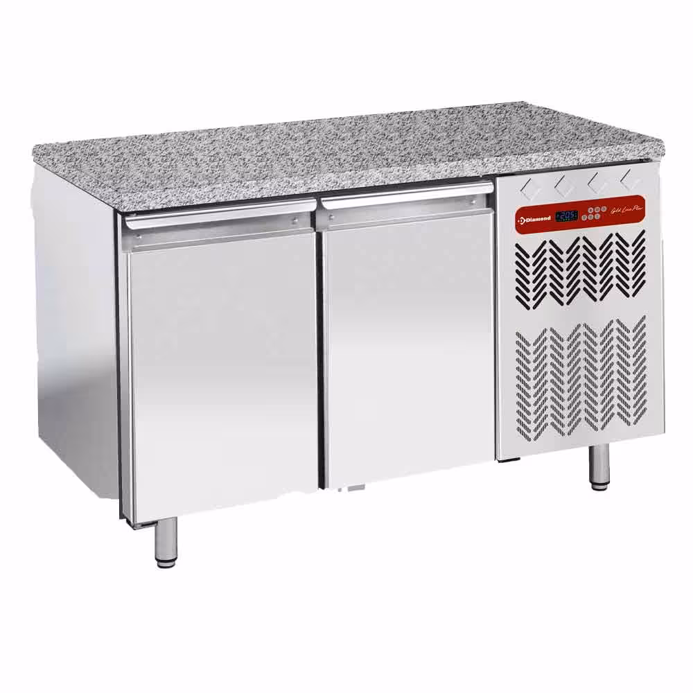Table de congélation, ventilée, 2 portes EN 600×400 – Top en granit