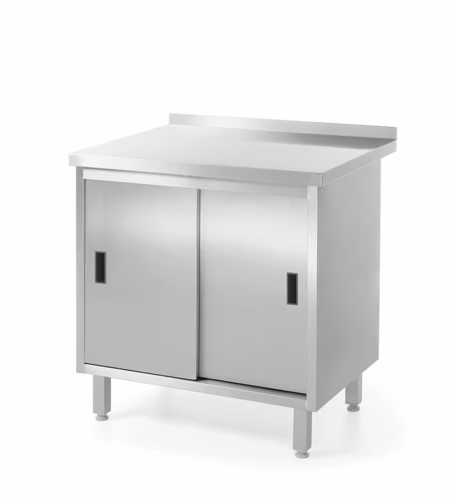 Table murale avec placard, portes coulissantes – soudée, HENDI, Profi Line, 800x600x(H)850mm