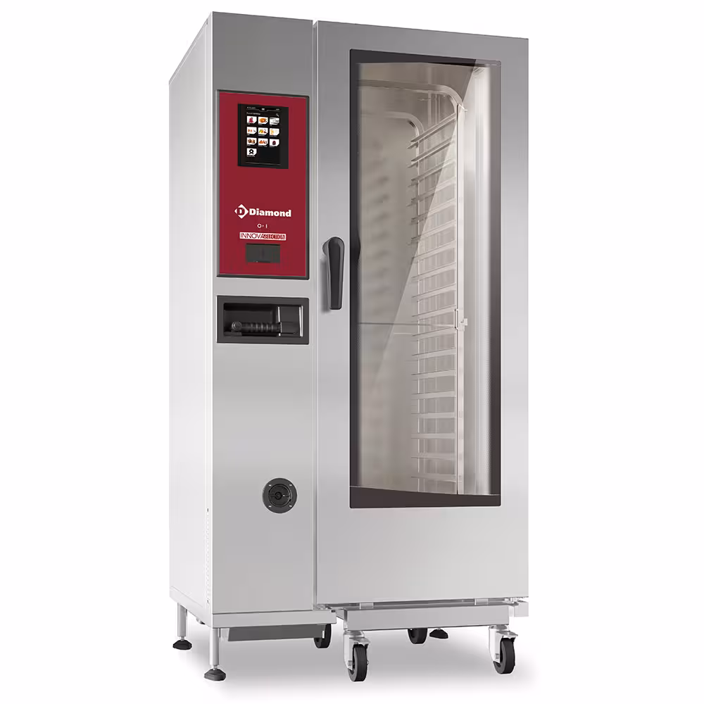 Porte à triple vitrage: poignée ergonomique et athermique, fermeture automatique avec sécurité évitant toutes ouvertures accidentelles, récupérateur de condensation intégré dans la porte, vitre intérieure montée sur charnières, facilitant le nettoyage garantissant une hygiène parfaite. Une circulation d’air entre les vitres garantit une meilleure isolation thermique. Micro-interrupteur pour l’arrêt du ventilateur lors de l’ouverture. Éclairage LED latéral permettant une vision globale de l’enceinte. Chauffage électrique: par résistances blindées circulaires inoxydables placées derrière les déflecteurs du ventilateur, vapeur: par résistances blindées inoxydables dans un boiler extérieur (en acier inox AISI 316). Panneau de commandes « TOUCH SCREEN » de 7″ avec, accessibilité frontale, facilité et rapidité pour le SAV, indice de protection IPX5 (contre les jets d’eau à la lance). Certification « Energy Star ».