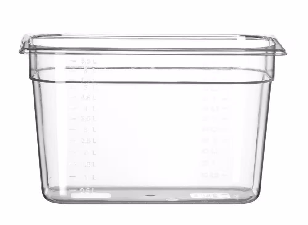 Bacs gastronormes professionnels de qualité extra en polycarbonate transparent.