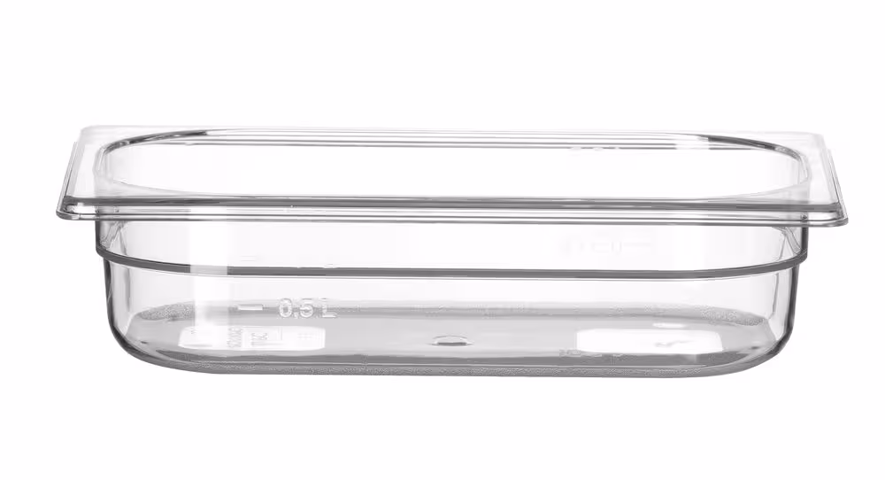 Bacs gastronormes professionnels de qualité extra en polycarbonate transparent.
