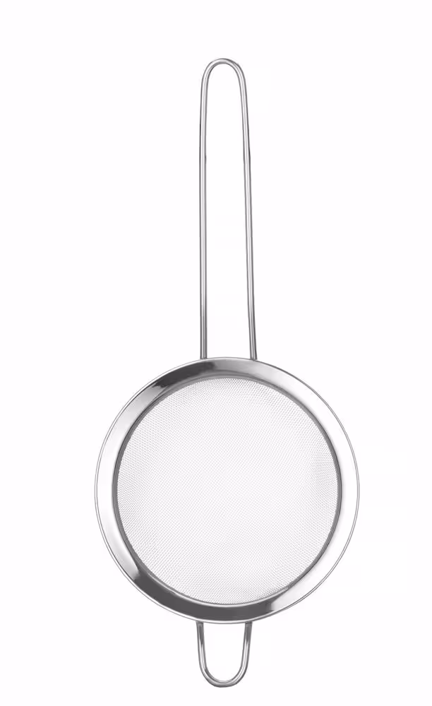Avec un petit support pour poser la passoire sur un pot ou un bol, ou pour la suspendre.