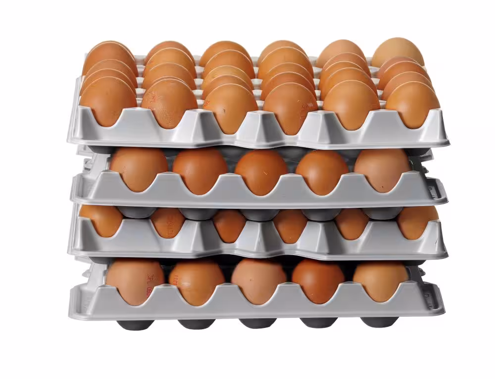 Chaque plateau peut contenir 30 œufs (5 x 6 rangées) – l’ensemble peut contenir 120 œufs au total.