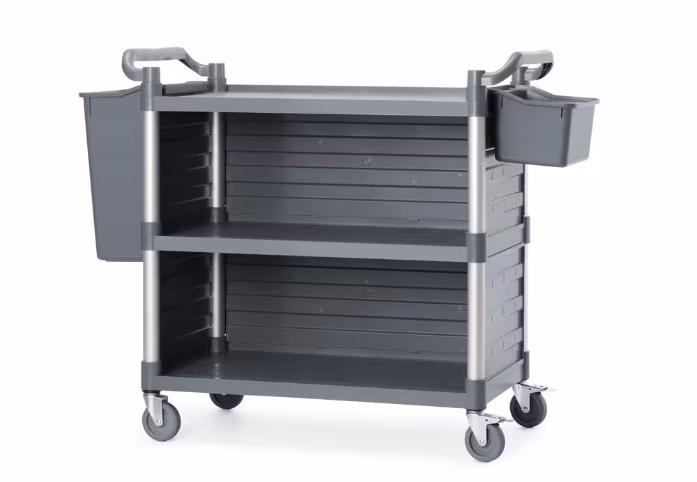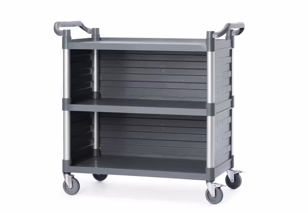 Soyez le premier à laisser votre avis sur “Chariot de service en polypropylène 3 étagères, grand, AmerBox, Comprend des panneaux latéraux, 1010x500x(H)960mm”